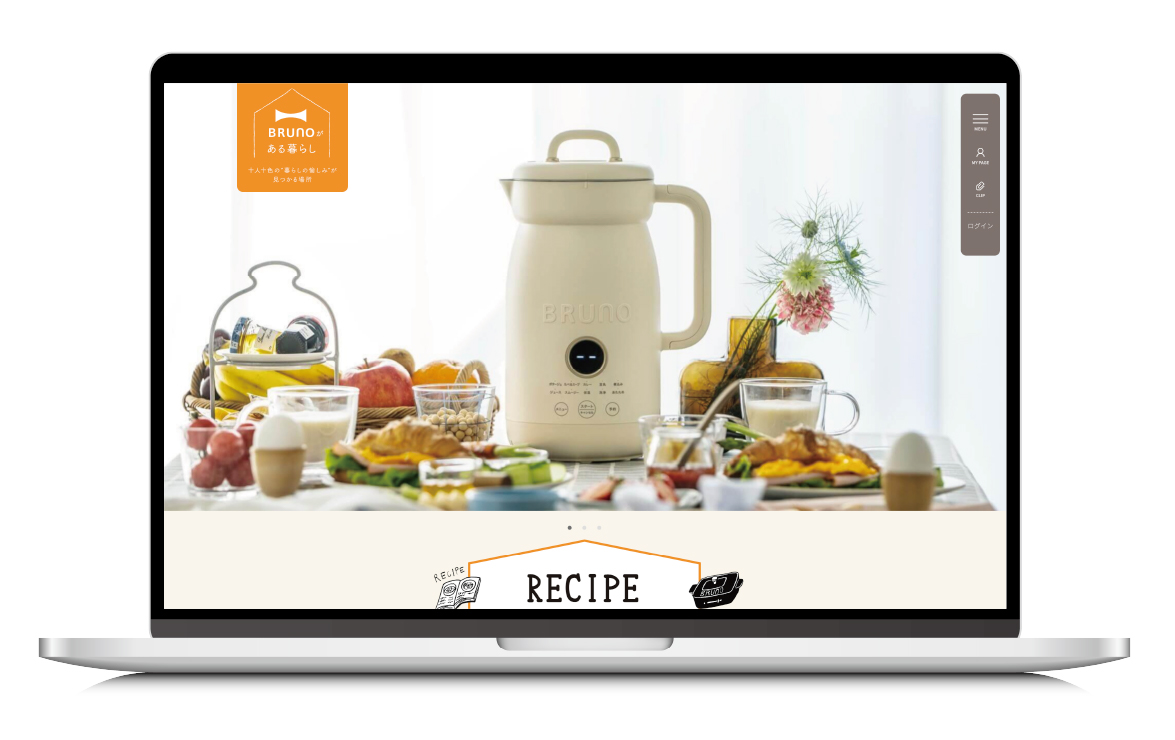 ホットプレートで有名なライフスタイルブランド「BRUNO(ブルーノ)」のファンサイト「BRUNOがある暮らし」のサイトデザインを担当しました。ブランドのコミュニケーションとライフスタイルイメージの確立を目的に、暮らしを感じさせるサイトロゴの制作や、イメージ写真を大きく魅せるレイアウトを採用。プロジェクトチーム内でアイデアを出し合いながら、ブランドイメージに沿った、読みやすく魅力的なデザインにまとめました。