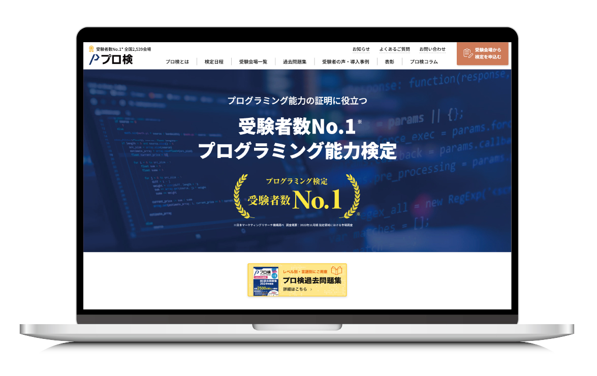 全国で最も多くの受験者数を誇る「プログラミング能力検定(プロ検)」の公式サービスサイトを担当しました。
